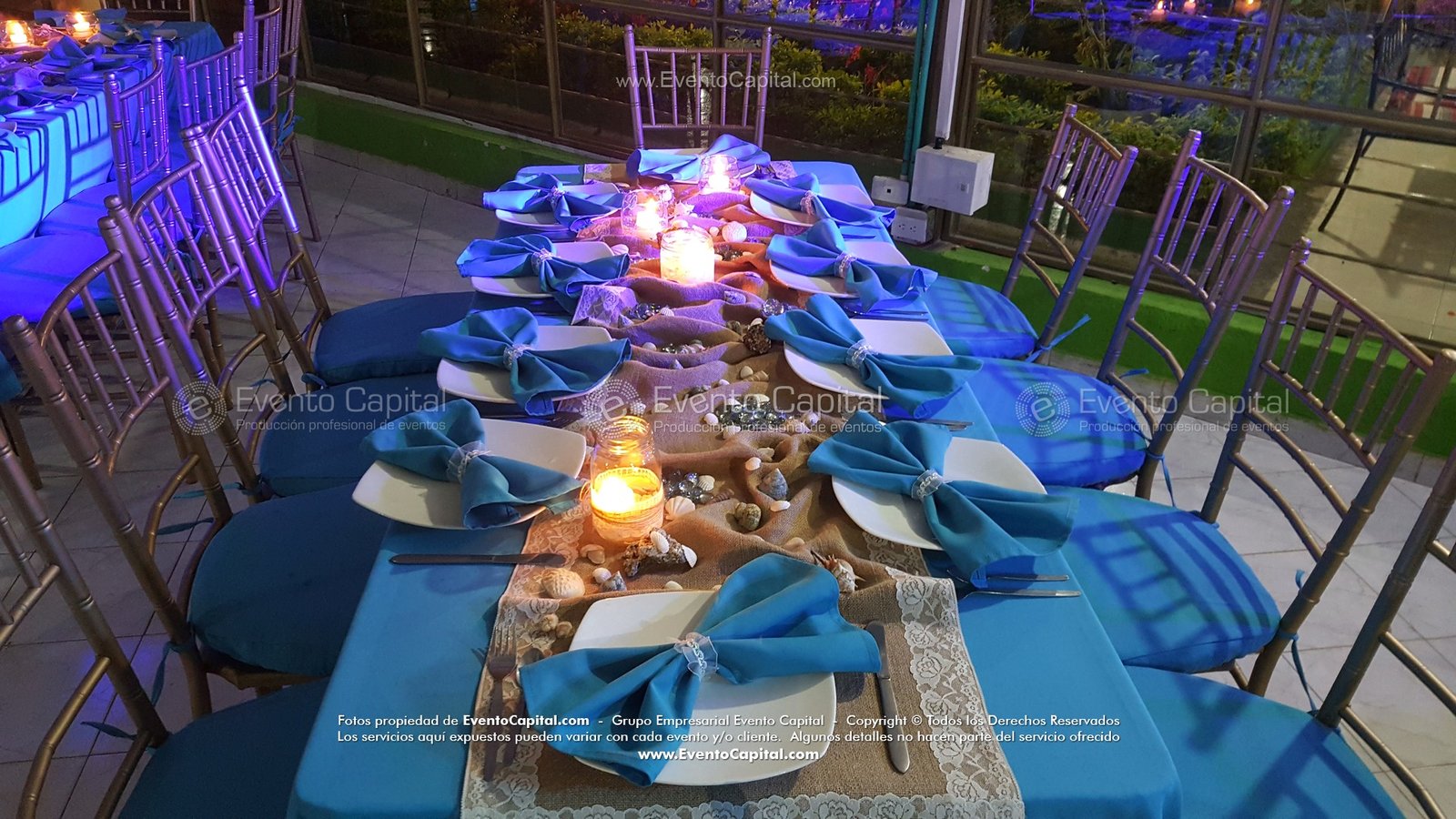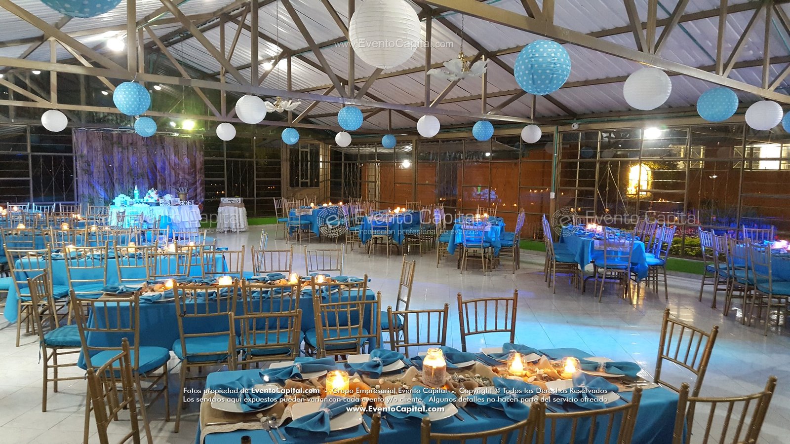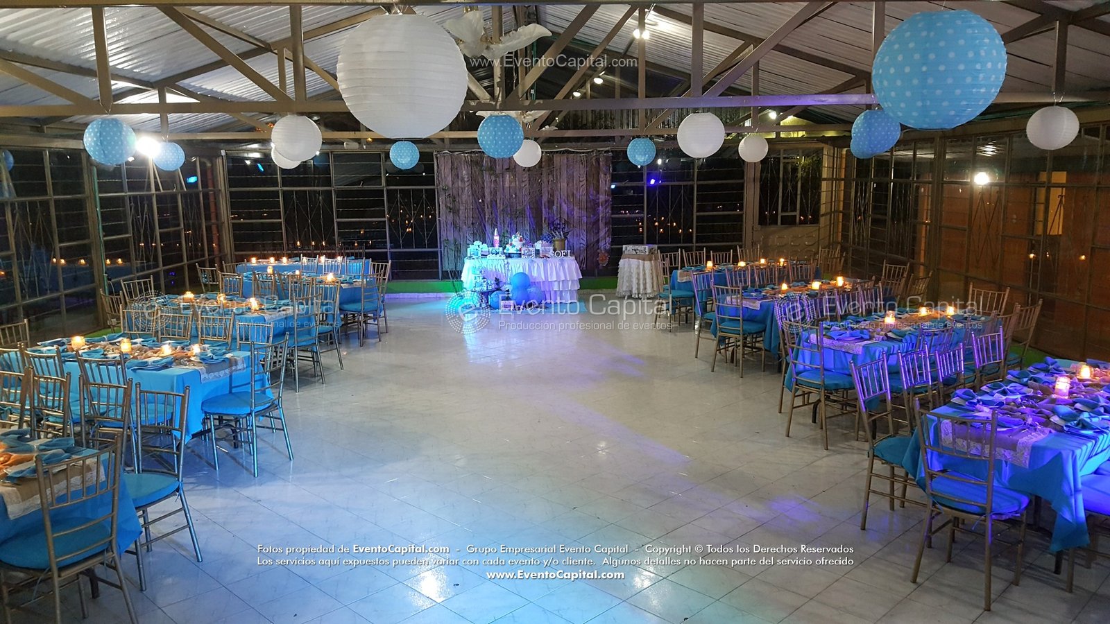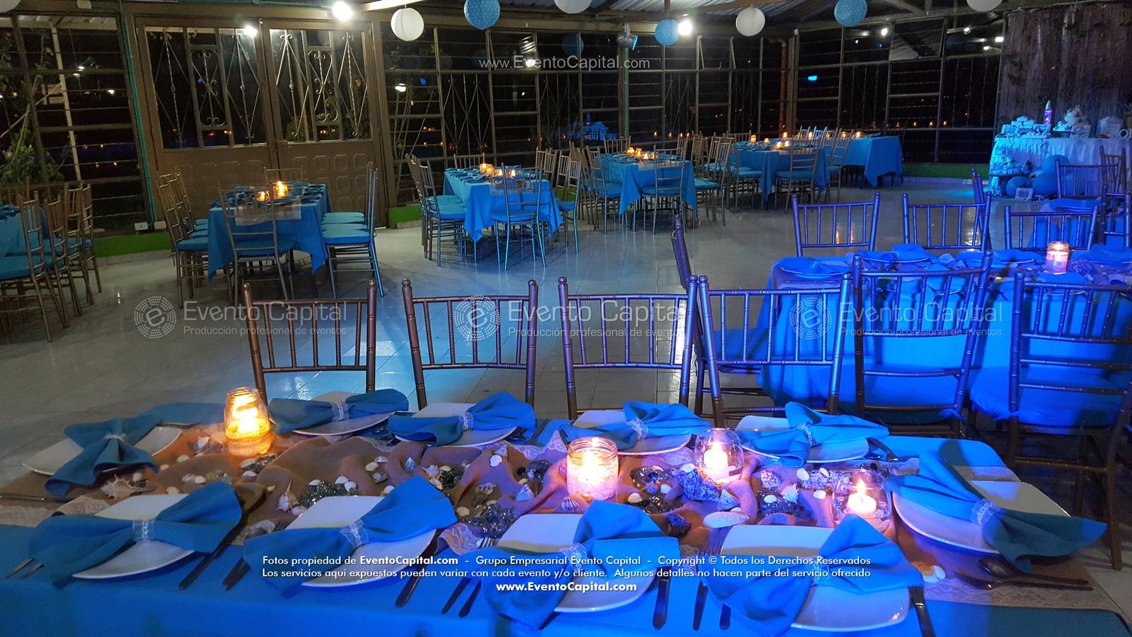 Las Fiestas temáticas incluyen decoración en mesas, mantelería, accesorios, ponqué personalizado y stand para fotografía.