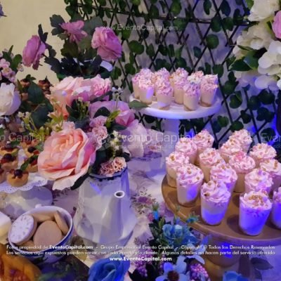 También se puede incorporar una mesa de postres a esta temática  por favor descargue la cotización de plan todo incluido y consulte un asesor para determinar el valor total de su evento.